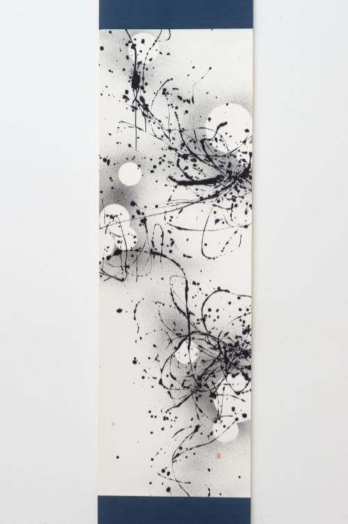 Bereits mit drei Jahren beschritt IWASAKA Noriko unter dem Einfluss von Großvater und Vater den Weg der Kalligraphie. Sie entwickelte einen eigenen Stil, in dem sie mittels traditioneller Techniken Schriftzeichen kalligraphiert, die sich in ihrer äußeren Form auflösen und dadurch an Abstraktion mit spannenden Ergebnissen gewinnen. Ausstellungen führten sie außerhalb von Japan insbesondere nach Frankreich und in die USA, zuletzt im Herbst 2025 mit einer Einzelausstellung in New York.